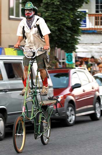 The final item in this week’s Flashback takes us to the Alberta neighborhood. It was before Last Thursday went carfree and it was the last time the colorful merrymakers that lived at the infamous Alberta Clown House would work their magic on appreciative crowds. And in case you’re wondering, Dingo the Clown is still going strong. He’s got a clowning partner named Olive and they’re a hot item at parties and events throughout the city.